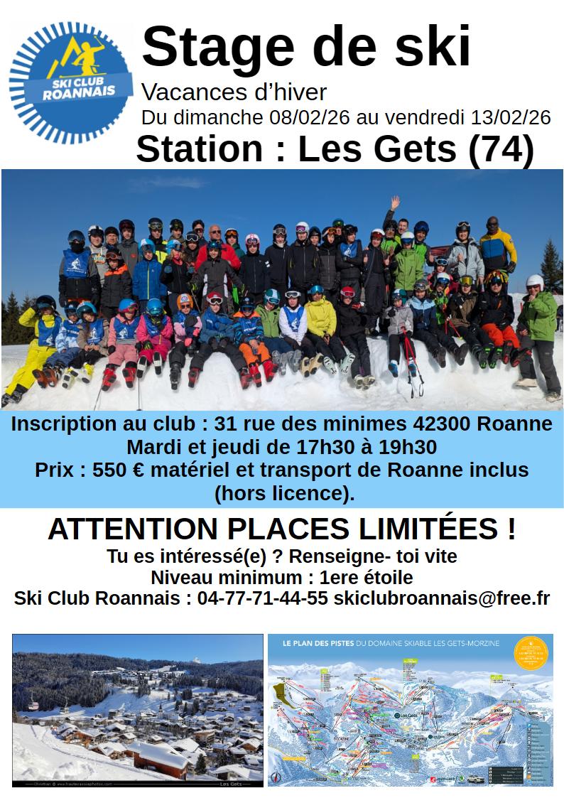 Stage 2026 Flyer en cours de création pour novembre 2025. Le stage se déroulera aux Gets du 08 au 13 février 2026 avec un plus grand domaine que Manigod.
