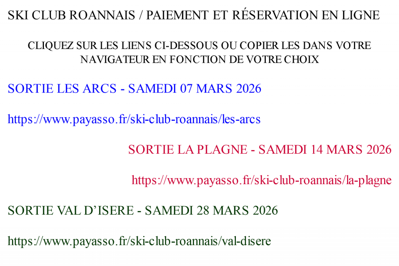 Le Ski Club Roannais se décline toute responsabilité en cas de perte, de vol, de détérioration du matériel et de vos vêtements de ski pendant les sorties.